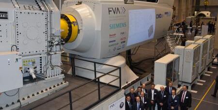 Nach einjähriger Vorbereitungsphase wurde am 31. Mai das Verbundprojekt: „Belastungen an den Antriebskomponenten von Windenergieanlagen“, die sogenannte FVA-Gondel, am Center for Wind Power Drives (CWD) an der RWTH Aachen offiziell eingeweiht. Die FVA-Gondel wurde in enger Zusammenarbeit zwischen der Hochschule und den Mitgliedsfirmen der Forschungsvereinigung Antriebstechnik e.V. (FVA) verwirklicht. Damit kann der elektromechanische Antriebsstrang von Windenergieanlagen im Multi-Megawatt Bereich unter annähernd realen Bedingungen untersucht werden.