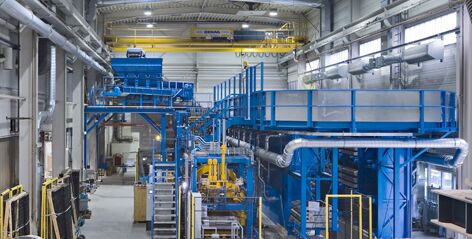 Die Hochregallösung verringerte auch den Hallenflächenbedarf der Fertigungsanlage. Da die Gieß- und Abkühl-Areale kleiner sind, können die beim Abgießen und Erstarren entstehenden Dämpfe nahezu vollständig abgesaugt und in einen Rotationswärmetauscher gespeist werden. Die gewonnene Wärme setzt das Unternehmen zur Beheizung der Halle ein.