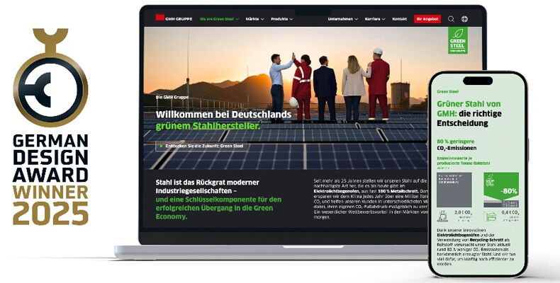 Die GMH Gruppe, Deutschlands führender Hersteller von grünem Stahl, und die Agentur Coool wurden für ihre Zusammenarbeit an der neuen Online-Präsenz der GMH Gruppe mit dem renommierten German Design Award 2025 ausgezeichnet.