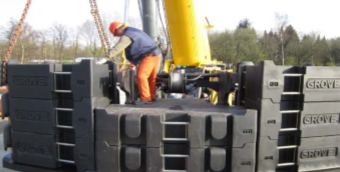 Eine entscheidende Rolle für die Stabilität des Krans spielt naturgemäß die Grundplatte. Sie besteht aus mehreren, zwischen 40 und 110 Millimeter dicken Grobblechen, die bei der Jebens GmbH in Korntal-Münchingen geschnitten und zur fertigen Baugruppe verarbeitet werden. Die Dimensionen der zusammengebauten Grundplatte sprechen für sich: 1,8 Meter hoch, 2,5 Meter tief und 5,5 Meter breit bringt sie 12,5 Tonnen Gewicht auf die Waage. Das gibt ihr das nötige Rückgrat, um bis zu 120 Tonnen Ballast aus zwölf Graugussplatten zu schultern. Beim Einsatz der Wippspitze kommen mit dem Hilfshubwerk, das mit der Platte verbolzt wird, weitere fünf Tonnen Gewicht hinzu.