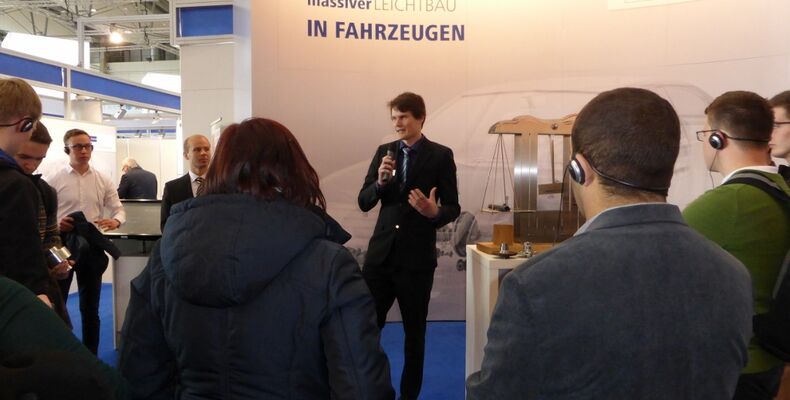 Den Stand des Verbandes besuchten täglich Schülergruppen über die Tec2You-Nachwuchsinitiative. Ein Maschinenbau-Student der Forschungsgesellschaft Kraftfahrwesen mbH Aachen (fka) begrüßte die Ingenieure in spe auf Augenhöhe. Darüber hinaus informierten sich Studenten vom Institut für Umformtechnik der Universität Hannover an einem Tag intensiv über Karrierechancen, Praktika sowie Studien- und Diplomarbeiten bei den 26 Unternehmen des Gemeinschaftsstandes.