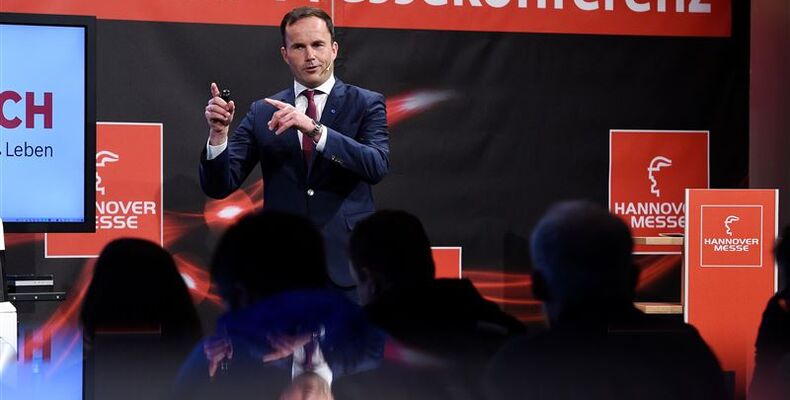 Quelle und Foto: HANNOVER MESSE / Bildtext: Dr. Jochen Köckler, Mitglied des Vorstandes, Deutsche Messe AG, Hannover, während der Auftaktpressekonferenz der HANNOVER MESSE am 19. April 2017.