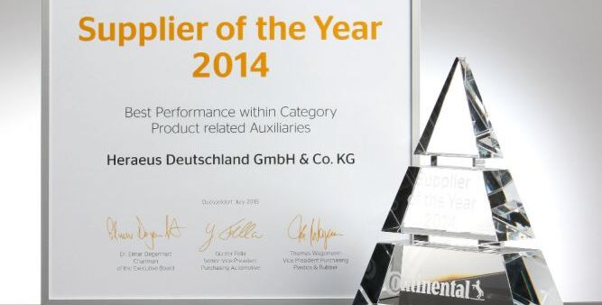 Quelle: Heraeus Bildtext: Continental hat Heraeus als besten Lieferanten ausgezeichnet. (Foto: Heraeus)
