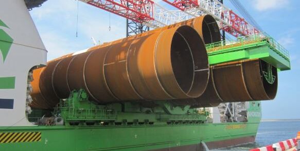 In Wassertiefen von 22 bis 36 Meter sorgen die insgesamt 55.000 Tonnen thermomechanisch gewalzten Grobbleche in Form von bis zu 1.250 Tonnen schweren Monopile-Fundamenten dafür, dass der Offshore-Windpark Rentel sicher steht.