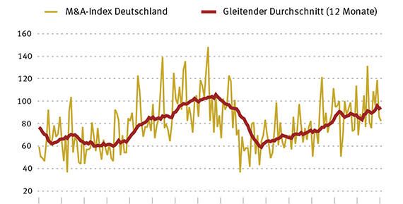 Die Übernahmen und Fusionen mit deutschen Unternehmen erreichen neue Rekorde, so das Zentrum für Europäische Wirtschaftsforschung (ZEW). Das geht aus dem aktuellen gleitenden Zwölf-Monatsdurchschnitt des ZEW-ZEPHYR M&A-Index hervor. Der Zwölf-Monatsdurchschnitt, basierend auf der Anzahl der getätigten Fusionen und Übernahmen (Mergers & Acquisitions, M&A), steigt seit Beginn der Merger-Welle Anfang des Jahres 2011 kontinuierlich, abgesehen von einem kleineren Abwärtstrend im Jahr 2015. Im August 2016 stand der Zwölf-Monatsdurchschnitt bei 96 Indexpunkten, höhere Werte wurden zuletzt im Jahr 2009 erreicht.