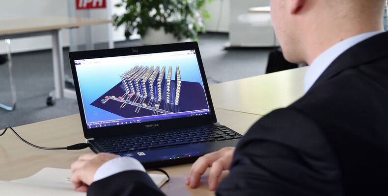 Quelle: IPH Bildtext: Die Schulungsteilnehmer erfahren unter anderem, wie sich Fabriken am Computer simulieren lassen. (Foto: Ralf Büchler, IPH)