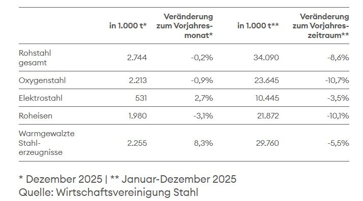 Jahresbilanz der Stahlproduktion 2025: Viertes Krisenjahr in Folge