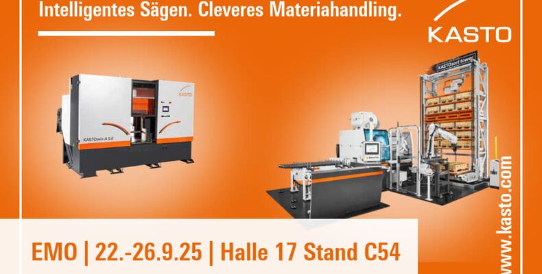 Am Messestand zeigt KASTO auch, wie intelligentes Sägen heute geht: mit starken Maschinen wie der KASTOwin, der KASTOmicut und dem Powerpaket KASTOtec für große Schnittbereiche. Dazu gibt es clevere Softwarelösungen, die Gerad- und Gehrungsschnitte automatisch im WMS KASTOlogic optimieren oder die Vorschubgeschwindigkeit sensorlos an Material und Querschnitt anpassen. Über offene Schnittstellen wie OPC UA oder MQTT lassen sich die Sägen nahtlos in bestehende Systeme integrieren. Zum Jahreswechsel starten die ersten Modelle mit der neuen, noch bedienerfreundlicheren und performancestärkeren Generation der KASTO-Steuerungen ProControl und ExpertControl. Neu dabei sind ein „Simple Mode“ und viele praktische Funktionen – zum ersten Mal wird die Lösung auf der EMO zu sehen sein. Intelligentes Sägen heißt: stärkere Leistung, weniger Aufwand und Maschinen, die mitdenken.
