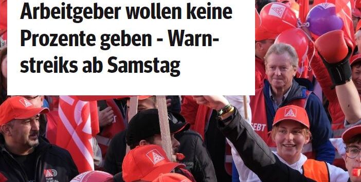 Die IG Metall ruft daher für die nächste Woche zu weiteren Warnstreiks auf und wird den Druck erhöhen. Am Montagabend entscheidet der Vorstand der IG Metall über das weitere Vorgehen.