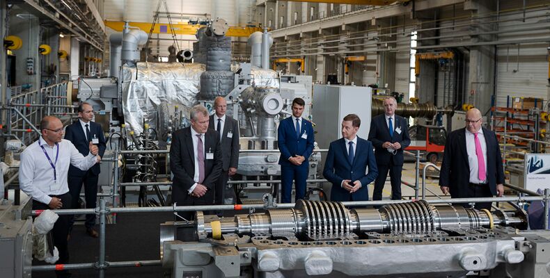 Hinweis zum Bild, von links nach rechts: Beim Besuch des Siemens Energy-Innovationscampus und der künftigen Baustelle des Wasserstofftestlabors: Sven Werner, Standortleiter von Siemens Energy, Octavian Ursu, Oberbürgermeister der Stadt Görlitz, Dr. Jochen Eickholt, Mitglied des Vorstands von Siemens Energy, Prof. Welf-Guntram Drossel, geschäftsführender Institutsleiter des Fraunhofer IWU, Grzegorz Macko, stellvertretender Marschall der Woiwodschaft Niederschlesien, Sachsens Ministerpräsident Michael Kretschmer, Thomas Schmidt, Sächsischer Staatsminister für Regionalentwicklung und Bundeswirtschaftsminister Peter Altmaier