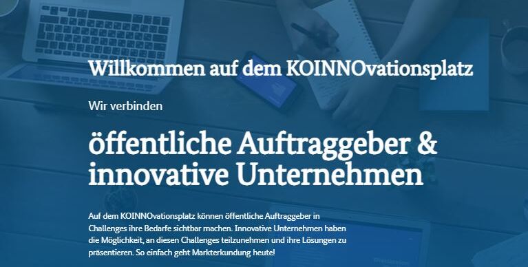 Beim KOINNOvationsplatz handelt es sich um eine intermediäre Plattform, die die Bereiche „Challenges“ und „Marktplatz der Innovationen“ umfasst. Diese sollen öffentlichen Auftraggebern und Bietern (z.B. Startups, KMU) den Austausch und damit die Identifikation von Innovationen erleichtern.