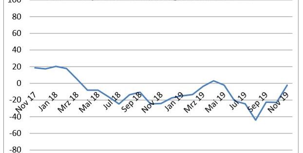 Die ZEW-Konjunkturerwartungen für Deutschland steigen im November 2019 sehr stark an. Der neue Wert der Konjunkturerwartungen liegt bei minus 2,1 Punkten und ist damit 20,7 Punkte höher als im Vormonat. In der aktuellen Umfrage hat sich die Einschätzung der konjunkturellen Lage für Deutschland um 0,6 Punkte erneut leicht verbessert.