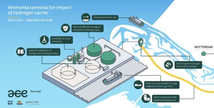 Am vorgesehenen Standort auf der Rotterdamer Maasvlakte können Schiffe aus aller Welt anlegen, um grünes Ammoniak und in der Anfangsphase möglicherweise auch blaues Ammoniak auszustoßen. Die vorhandene Infrastruktur und die logistischen Einrichtungen des Rotterdamer Hafens werden dabei genutzt. Der Standort bietet Raum für die Entwicklung einer Anlage zur Umwandlung von Ammoniak in Wasserstoff. In Zukunft wird diese Anlage an das nationale Wasserstoffnetz von Gasunie angeschlossen, das den zukünftigen Wasserstoffmarkt in Nordwesteuropa bedienen kann.