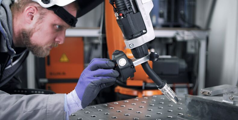 Ein Beispiel: Im Auftrag der Metallbau Tafferner GmbH aus Lahnau brachte ein KR CYBERTECH im Rahmen eines Pilotprojekts Ecknähte in fallender Position an Konsolen aus unlegiertem Stahlblech an. Die durchschnittliche Schweißzeit pro Bauteil betrug – bei zehn Bauteilen mit je sechs Schweißnähten – 28 Sekunden. KUKA Roboter überzeugen mit reduzierten Fertigungszeiten bei konstanter Qualität und übernehmen monotone Tätigkeiten, wodurch Fachkräfte sich auf ihre Kernkompetenzen fokussieren können. Besucher des KUKA Messestands können sich auch über das Verschweißen größerer Bauteile mit Robotern höherer Traglastklassen informieren.