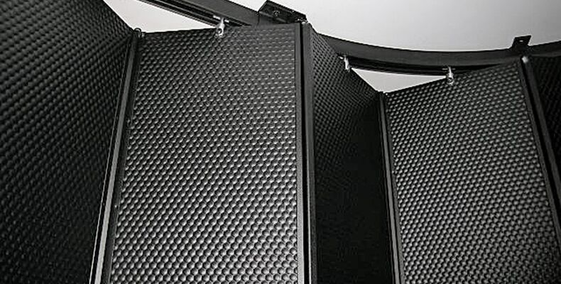 Die Laserschutz-Vorhänge EVER GUARD von Laser Components sind flexibel verschiebbar. Dabei sind die einzelnen Lamellen sind ca. 25 cm breit und durch beidseitige Scharniere beweglich. Die wabenartige Struktur-Oberfläche absorbiert und streut die Laserstrahlung. Das Material ist für alle gängigen Wellenlängen geeignet und nach DIN EN 12254 zertifiziert.