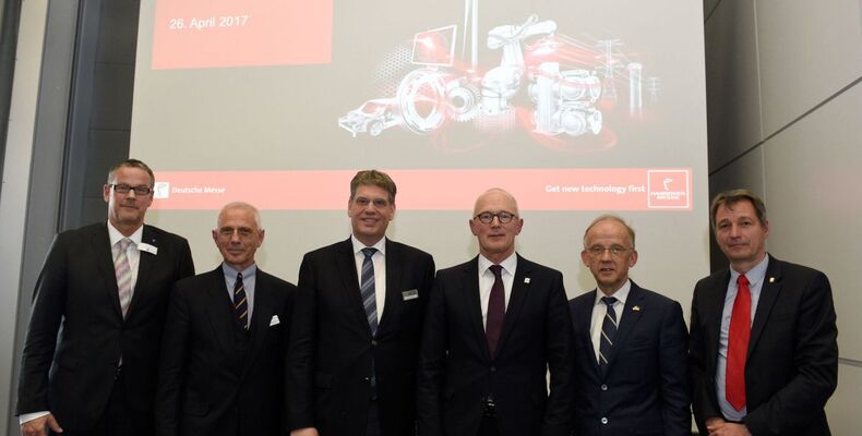 Quelle: Leichtbau BW Bildtext: Teilnehmer Pressekonferenz Industrial Supply in Hannover mit Dr. Wolfgang Seeliger (1.v.r) (Foto: Leichtbau BW)