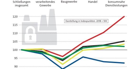 Zuerst sieht man es in den Innenstädten: Leere Schaufenster und verwaiste Ladengeschäfte nehmen zu – immer mehr Unternehmen schließen und scheiden aus dem Markt aus. Es sind aber nicht nur Händler, konsumnahe Dienstleister und Gastronomen, die aufgeben müssen. Auch das Baugewerbe und das verarbeitende Gewerbe verzeichnen seit 2021 signifikant steigende Schließungszahlen.