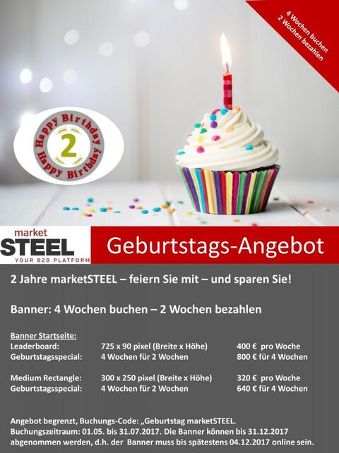 2 Jahre marketSTEEL - Geburtstagsangebot als Dankeschön