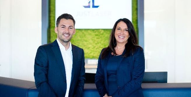 Bildtext (Bild1): Die JustLaser-Geschäftsführung, (v.l.) Georg Lauscha und Alexandra Kutos, zieht nach dem ersten Kooperationsjahr mit TEKA eine positive
