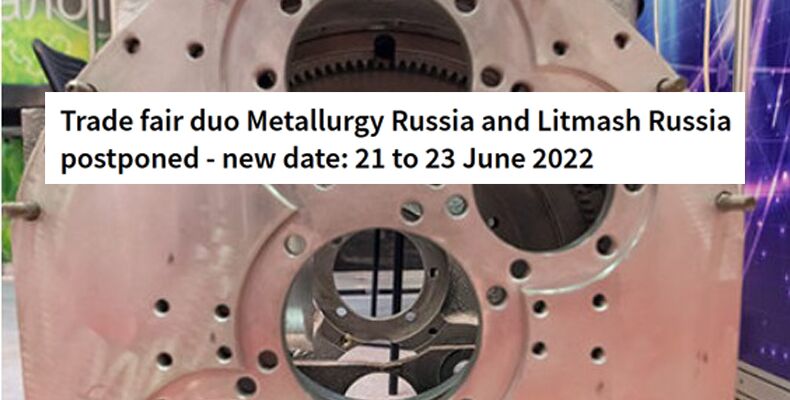 Nach enger Absprache mit Ausstellern und Partnern verschieben die Messe Düsseldorf, ihre Tochtergesellschaft Messe Düsseldorf Moskau und ihr russischer Partner Metal-Expo die Metallurgy Russia und Litmash Russia. Die Fachmessen für Metallurgie und internationale Gießereitechnik, Gießereibedarf und Guss finden nun vom 21. bis 23. Juni 2022 auf dem zentralen Moskauer Messegelände Expocentr statt – zwei Wochen nach ihrem geplanten Messetermin.