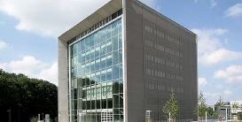 Bildtext (Vorschaufoto): SOP Architekten gestalteten einen Kubus, der durch seine vollverglasten Kopffassaden wie ein gigantisches Tor zum Campus wirkt.