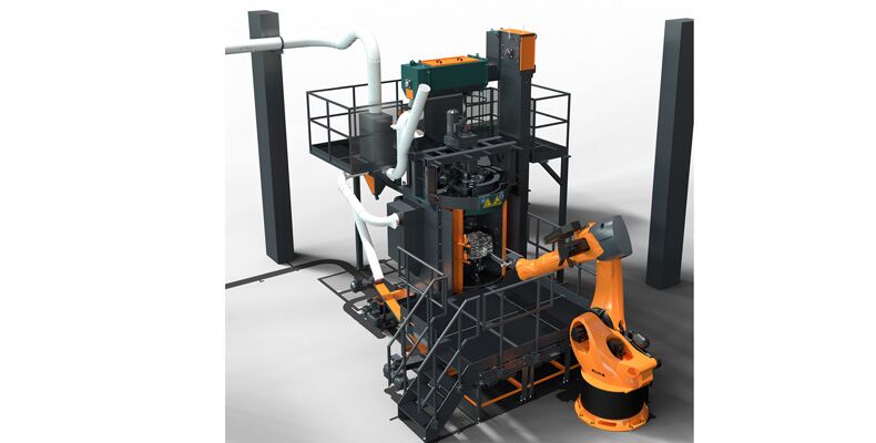 Insbesondere bei zum Teil körperlich anstrengenden und monotonen Aufgaben, wie z. B. das Be- und Entladen von Strahlanlagen, gewinnt die Automatisierung des Teilehandlings durch Industrieroboter als Gegenmaßnahme immer mehr an Bedeutung. Die Wendekammerstrahlanlage RWK 6/12-2 mit automatisiertem Teilehandling von Rösler bietet entscheidende Vorteile. Das Einsatzspektrum reicht vom Entsanden, Entzundern und Reinigen über das Homogenisieren von Oberflächen bis zu Shot Peening-Anwendungen. Die Bandbreite der bearbeitbaren Werkstücke beinhaltet unter anderem Guss- und Schmiedeteile, spanend hergestellte Bauteile, geschweißte Blechkomponenten sowie technische Federn.