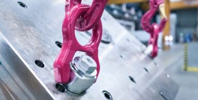 Neben sicherheitsrelevanten Aspekten bietet der RUD ACP-TURNADO auch Vorteile beim Handling. Wie bereits die Größen M12 bis M30 verfügen die großen Varianten über ein Drehgelenk in Bügelachse sowie eine austauschbare Kombikopfschraube mit Innen- und Außensechskant, die ein optimales Handling ermöglicht. Sie ist unverlierbar verbaut und dennoch austauschbar: ein im Alltag nützliches Produktmerkmal. Zudem ist - statt einer Einheitsgewindelänge über mehrere Größen hinweg - für jede Abmessung eine angepasste Gewindelänge verfügbar. Und durch Verschleisslinsen an den kritischen Punkten der Kraftübertragung lässt sich leicht beurteilen, ob der Anschlagpunkt bereits die Ablegereife erreicht hat.