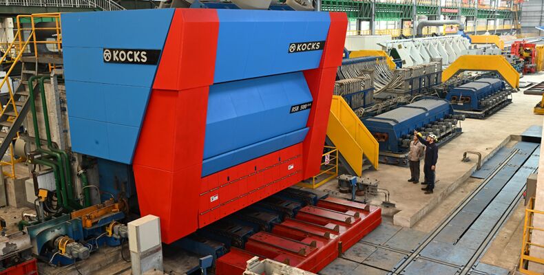 Die KOCKS Reducing & Sizing Blocks sind integraler Bestandteil der Sonderstahlproduktion und ermöglichen hochpräzise Walzprozesse. Neben ihrer technischen Leistungsfähigkeit zeichnen sich die modernen Anlagen der aktuellen Generation auch durch ihr markantes Design aus. Mit seinen klaren Linien betont der RSB® von KOCKS den zentralen Faktor Präzision im beeindruckenden Walzwerksumfeld. Die vollautomatische Abdeckung sorgt unter den anspruchsvollen Bedingungen im industriellen Umfeld für maximale Sicherheit bei ausbrechenden Stäben. Das Gesamterscheinungsbild des Blocks unterstreicht die besondere Relevanz des 3-Walzen-Blocks für die Qualität des Endprodukts.