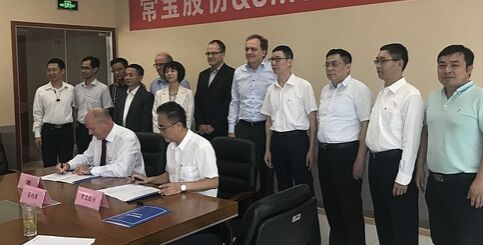 Bildtext: Vertreter der SMS Group und der Jiangsu ChangBao Precision Steel Tube Co., LTD bei der Vertragsunterzeichnung.