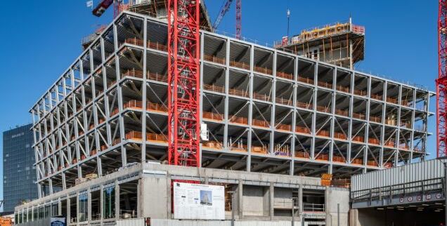 - Stahlkonstruktionen sind sieben- bis zehnmal leichter als herkömmliche Stahlbetongebäude, wodurch die Produktion und der Transport einer großen Menge an Material eingespart und somit der CO2-Fußabdruck der Gebäude erheblich reduziert werden.