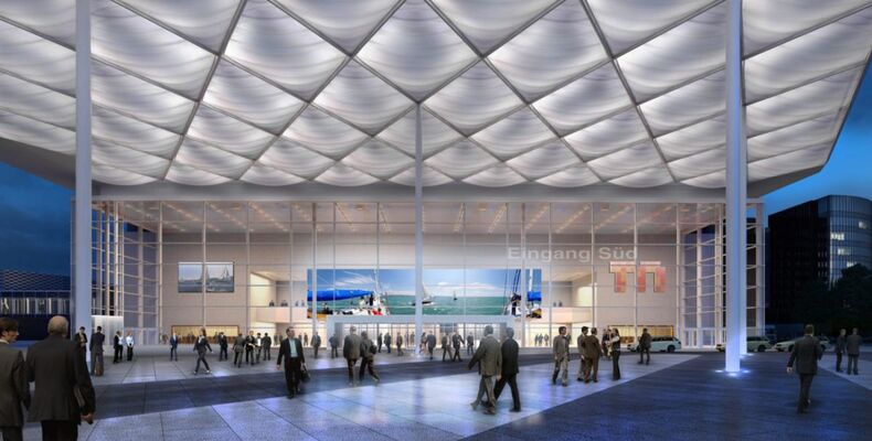 Quelle: Messe Düsseldorf Vorschau-Foto: Messe Düsseldorf, Neue Messe Süd © sop architekten, Visualisierung: CADMAN
