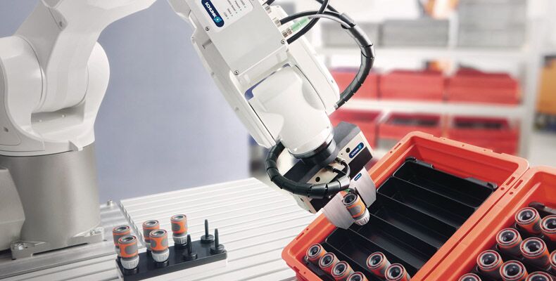 In der PPD sorgen vier integrierte Hochgeschwindigkeits-2/2-Ventile zusammen mit der integrierten Elektronik und dem am Greifer verbauten Positionssensor für einen geschlossenen Regelkreis. Durch die abgedichtete Bauweise mit IP67 ist die PPD bestens für den Einsatz im industriellen Umfeld geeignet. Dank der robusten Ausführung lässt sich die Einheit end-of-arm installieren – und durch kurze Schlauchlängen präzises Positionieren realisieren. Das ermöglicht eine Positioniergenauigkeit von bis zu 0,5 mm. Die PPD ist in drei Varianten erhältlich, die sich durch die Durchflussmenge der intern verbauten Ventile unterscheiden. Baugröße und Gewicht bleiben dabei stets gleich. Als Sensoren lassen sich ein IO-Link-Sensor von SCHUNK oder alle gängigen analogen Sensoren anderer Anbieter verwenden.