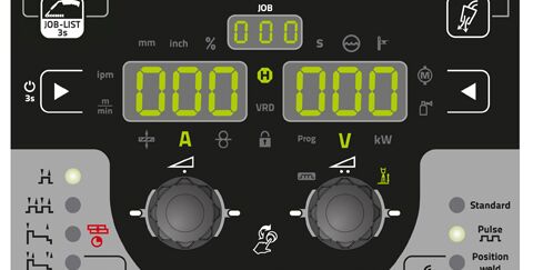 Die mit einer neuen Schnellauswahl ausgestattete Steuerung LP-XQ optimiert das Einstellen und Arbeiten: Der Wechsel zwischen den MIG/MAG-Prozessen MIG/MAG Standard, forceArc, wiredArc, rootArc und coldArc ist mit der Prozesswechseltaste leicht und einfach möglich. Darüber hinaus kann auch zwischen den Standard-JOBS, Puls und Positionweld schnell gewechselt werden. Die optimale Kennlinie wird dabei immer automatisch an die vorgegebenen Grundeinstellungen wie Material des Schweißzusatzwerkstoffs, dessen Durchmesser und das verwendete Gas angepasst.