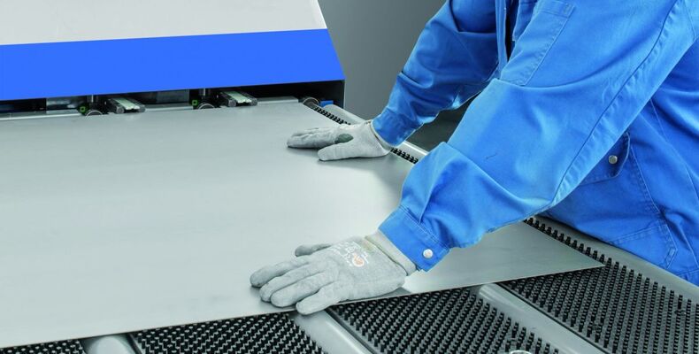 Das präzise Schneidsystem und das praxisgerechte Spannkonzept erlauben zudem die Verarbeitung von Restblechen bis zu einer Größe von 500 x 50 Millimeter. Unter der Maschinenabdeckung befindet sich ein spezielles, dreifach abgestuftes Sicherheitssystem. Dieses erlaubt, ohne Einrichten besonderer Sicherheitsbereiche, die Laserbearbeitung an den erwähnten Materialien und Materialdicken. Die Wartungsöffnung für den Laserkopf ist an der Vorderseite angeordnet, wodurch sich zum Beispiel beim Wechseln der Düse die Standzeiten verringern und die produktiven Laufzeiten erhöhen.