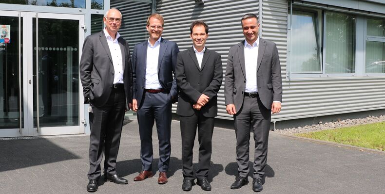 Bildunterschrift: v.l.n.r.: Geschäftsführung und Vorstand der Arbeitsgemeinschaft Laser und Lasersysteme für die Materialbearbeitung: Dr. Christoph Ullmann, Laserline (Vorsitzender), Dr. Stefan Ruppik, Coherent (Stellvertretender Vorsitzender); Dr. Sven Breitung, VDMA; Nikolas Meyer, EMAG LaserTec.