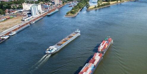 Bildtext: Selbst auf dem Rhein kann die Verkehrsdichte noch verdoppelt werden. Im Zusammenwirken mit den anderen Verkehrsträgern leistet die Binnenschifffahrt damit einen Beitrag zur Resilienz und Durchhaltefähigkeit in Krisenzeiten. Das sollte sich auch im nun vorgesehenen Infrastruktur-Sondervermögen widerspiegeln.
