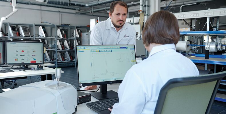 Mit der IR-Spektroskopie kann LEIBINGER präzise die Materialklasse des zu bemusternden Produkts bestimmen. Mit etwas Fingerspitzengefühl lassen sich zudem teilweise auch Zusatzstoffe im Material identifizieren. Das ist entscheidend, um die optimale Tinte für das Material auszuwählen, da sich die spezifischen Eigenschaften von Tinte und Material gegenseitig beeinflussen. Um die Oberflächeneigenschaften der Materialien zu verändern und die Haftung der Tinten zu optimieren, werden die Materialien bei Bedarf direkt im Application Center mit Verfahren wie Corona oder Plasma vorbehandelt.