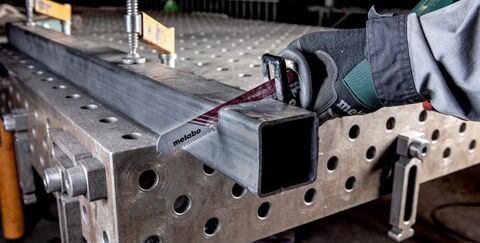 Speziell für das Sägen von Metallrohren hat Metabo jetzt die neuen Metall-Säbelsägeblätter „flexible fast metal" im