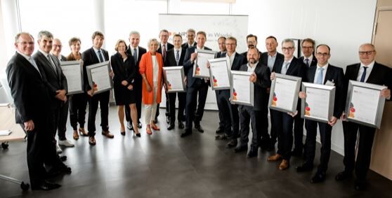 Schirmherr Andreas Pinkwart, Wirtschafts- und Digitalminister Nordrhein-Westfalens, überreichte bei der Preisverleihung in seinem Ministerium eine Urkunde an Trimet Vorstand Dr. Martin Iffert und die Vertreter der anderen Preisträger. Eine Jury hatte aus rund 100 Bewerbern neben Trimet und der Hella GmbH & Co. KGaA noch acht weitere Unternehmen ausgewählt, die mit innovativen Prozessen und Produkten beispielhaft für den Strukturwandel des Wirtschaftsstandortes Nordrhein-Westfalen stehen und als Vorbild wirken.