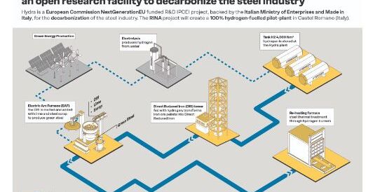Das Forschungs- und Entwicklungsprojekt Hydra (88 Mio. €) wird im Rahmen des EU-Programms NextGenerationEU der Europäischen Kommission finanziert und vom italienischen Ministerium für Unternehmen und Made in Italy über das Centro Sviluppo Materiali (CSM) von RINA in Castel Romano (Italien) unterstützt und ist Teil der IPCEI (Important Projects of Common European Interest). Die wasserstoffbetriebene Pilotanlage wird einen 30 m hohen Turm für die Direktreduktion von Eisenerz (DRI), einen Elektrolichtbogenofen (EAF) und einen Wiederaufwärmofen umfassen, die alle nahezu emissionsfrei arbeiten werden, um alle Arten von "grünem Stahl" herzustellen.