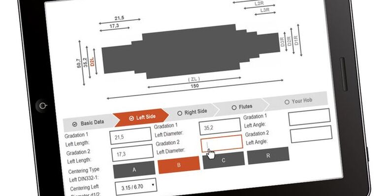 Die Handhabung des Konfigurators ist einfach: Der Anwender muss lediglich die Fertigmaße des gewünschten Wälzfräsers eingegeben und erhält sofort ein Angebot für den passenden Rohling. Die Visualisierung in Form einer 2D-Zeichnung mit Anzeige der eingegebenen Maße ermöglicht darüber hinaus eine schnelle Überprüfung der Eingaben und den Vergleich mit der Anfrageskizze.