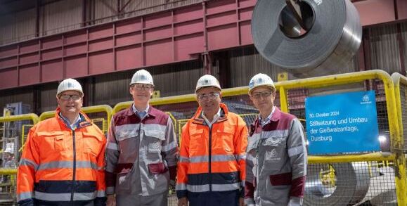 thyssenkrupp Steel Europe treibt die Modernisierung seiner Produktionsanlagen am Standort Duisburg voran. Im Rahmen der Strategie 20-30 wurde heute Abend die seit über 25 Jahren bestehende Gießwalzanlage außer Betrieb genommen und durch eine hochmoderne Stranggießanlage und ein modernisiertes Warmbandwerk ersetzt. Diese Maßnahmen erfolgen zwei Wochen früher als geplant und markieren einen bedeutenden Meilenstein für eine nachhaltige und innovative Stahlproduktion am Duisburger Standort. Der Hochlauf der neuen Stranggießanlage 4 und des Warmbandwerkes 4 mit zwei neuen Hubbalkenöfen soll ab Mai 2025 beginnen.