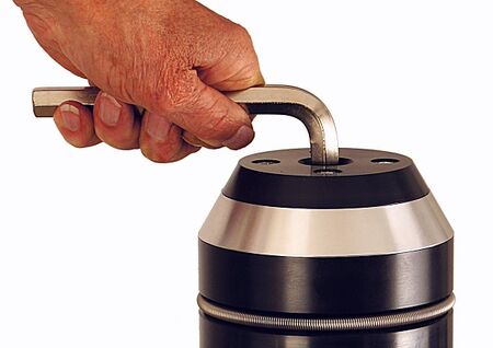 Quelle: WPR System; Bildtext: Für die Bedienung des manuellen WPR-Zentrierspanners braucht der Anwender nicht mehr als einen schlichten Sechskant-Schlüssel (Foto: WPR)