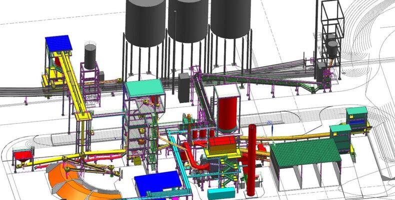 Quelle: Primetals Technologies Bildtext: Computeranimierte Darstellung der Brikettieranlage zum Recycling anfallender Reststoffe (Foto: Primetals)