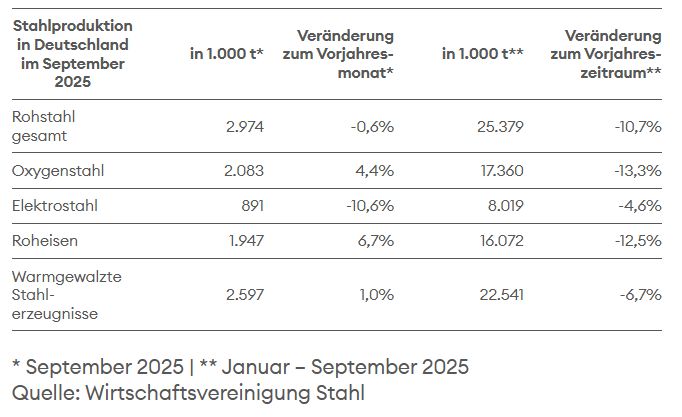Rohstahlproduktion in Deutschland auch im September unter Druck