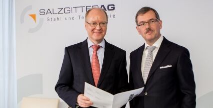 Quelle: Salzgitter AG Vorschau-Foto: Prof. Dr.-Ing. Heinz Jörg Fuhrmann (li.), Vorstandsvorsitzender, und Finanzvorstand Burkhard Becker (Quelle: Salzgitter AG)