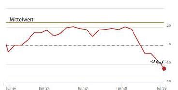 Dies ist der niedrigste Wert seit August 2012 und der langfristige Durchschnitt (23,2 Punkte) wird erheblich unterschritten. Seit Anfang des Jahres sind die Erwartungen um beachtliche 45,1 Punkte gesunken. Die Bewertung der aktuellen konjunkturellen Lage für Deutschland ist um 8,2 Punkte auf einen Stand von 72,4 Punkten zurückgegangen. „Die aktuelle Umfrageperiode wird von größeren politischen Unsicherheitsfaktoren geprägt. Vor allem die Befürchtung einer Eskalation des internationalen Handelskrieges mit den Vereinigten Staaten belastet den konjunkturellen Ausblick. Die positiven Neuigkeiten zur Industrieproduktion, den Auftragseingängen sowie zum Arbeitsmarkt werden von den erwarteten negativen Wirkungen auf den Außenhandel deutlich überkompensiert“, kommentiert ZEW-Präsident Prof. Achim Wambach, Ph.D.