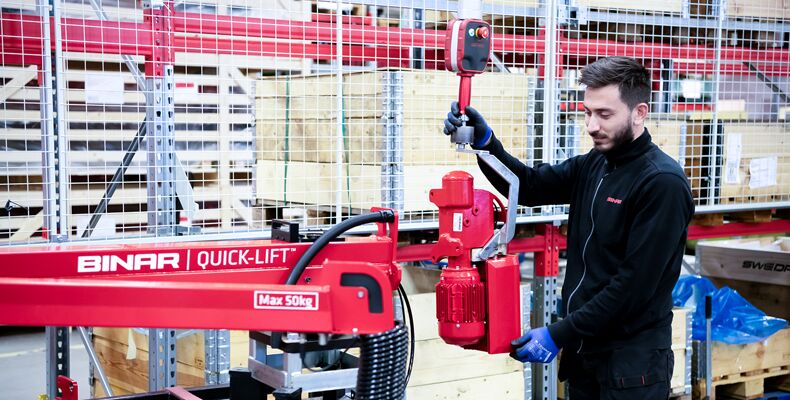Binar Handling startete 1979 mit der Entwicklung und Fertigung ergonomischer Hebe- und Handhabungslösungen. Das Ziel: Hebevorgänge zugleich leicht und sicher gestalten – ganz nach dem Motto „Beyond Gravity“. Das gelingt den Schweden sowie internationalen Tochtergesellschaften unter anderem in Unternehmen der Automobilindustrie, der Luft- und Raumfahrttechnologie und der industriellen Produktion sowie in der Lebensmittel-, Pharma- und Chemiebranche. Eine Besonderheit ist das Schienensystem, an dem die Hebegeräte motorunterstützt jeder Bewegung in X- und Y-Richtung folgen – auch über weitere Strecken.