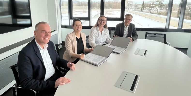 Quelle und Vorschaubild: Seco Tools GmbH / Foto (v. l. n. r.): Steffen Vogl, Geschäftsführer HAHN+KOLB, Jacqueline Wiertz, Geschäftsführerin HAHN+KOLB, Anna Malycheva, Geschäftsführerin Seco Deutschland, und Klaus Breuer, Director Sales & Contract Management bei Seco. © Seco Tools