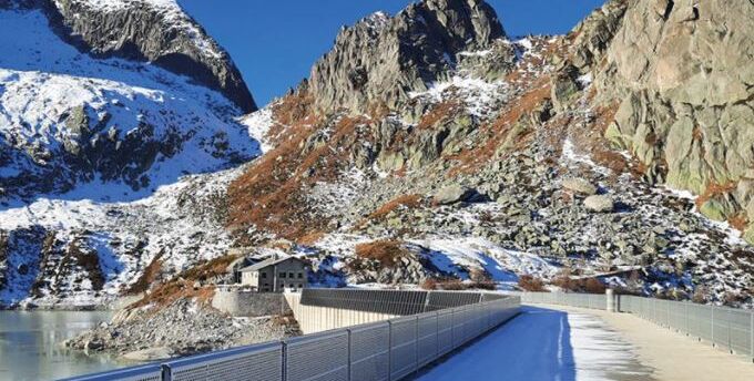 Im Jahr 1959 wurde in den Schweizer Alpen im Kanton Graubünden auf 2.162 Metern über dem Meeresspiegel der Staudamm Albigna in Betrieb genommen. Zusätzlich zur Wasserkraft produzieren seit September vergangenen Jahres an der Staumauer angebrachte Photovoltaik-Paneele jährlich bis zu 500 Megawattstunden sonnigen Naturstrom. Für die Geländesicherung des 759 Meter langen Staudammes, über welchen ein frequentierter Bergwanderweg führt, wurden sowohl auf der See- sowie der Talseite auf der Mauerkrone 1.467 Laufmeter an Speziallochblechen von SCHÄFER Lochbleche verbaut. Diese erlauben Passanten die absturzsichere Dammüberquerung und fungieren zugleich als Berührungsschutz der 1.280 Photovoltaik-Module.
